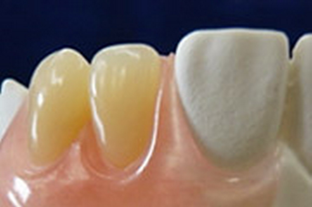 セラミック(陶材)とコンポジットレジンを調合してつくられた、柔軟性のある材質です。